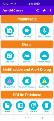 Developer can find the java and xml code from this android course app.You can copy all useful code and paste on your android project .