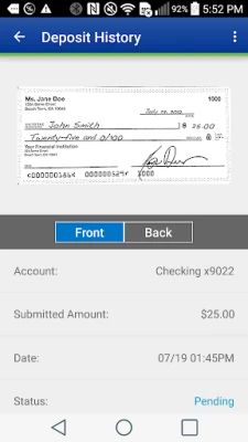 • Check balances • View pending transactions • Remote deposit capture • Pay bills • Transfer funds between accounts • Pay other people with POP Money • Quick access to contact info