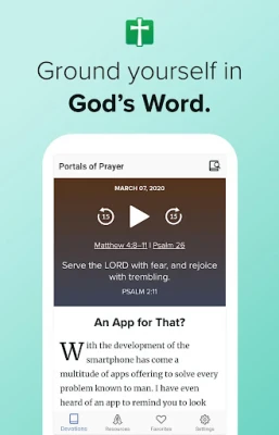 No matter when or where, Portals of Prayer inspires you to live each day as a disciple of Christ. Through each daily audio-and-textual devotion, you meditate on God's Word and see it working through you in your life. New updates allow for a seamless and easy-to-use interface, keeping you focused on your devotional time.