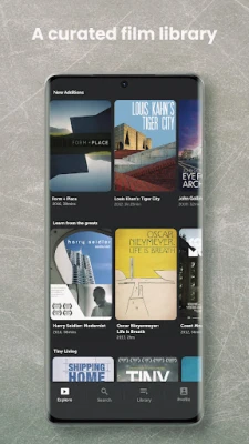 Showcasing award-winning feature films, exclusive Shelter Original titles, episodic series and shorts, along with dedicated channels such as the Michael Blackwood Architecture Collection, The Design Emotive, 9 Sekunden, Never Too Small, Dwell and green magazine.